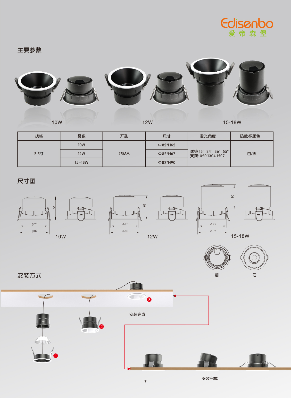 透镜:15°/24°/36°/55°